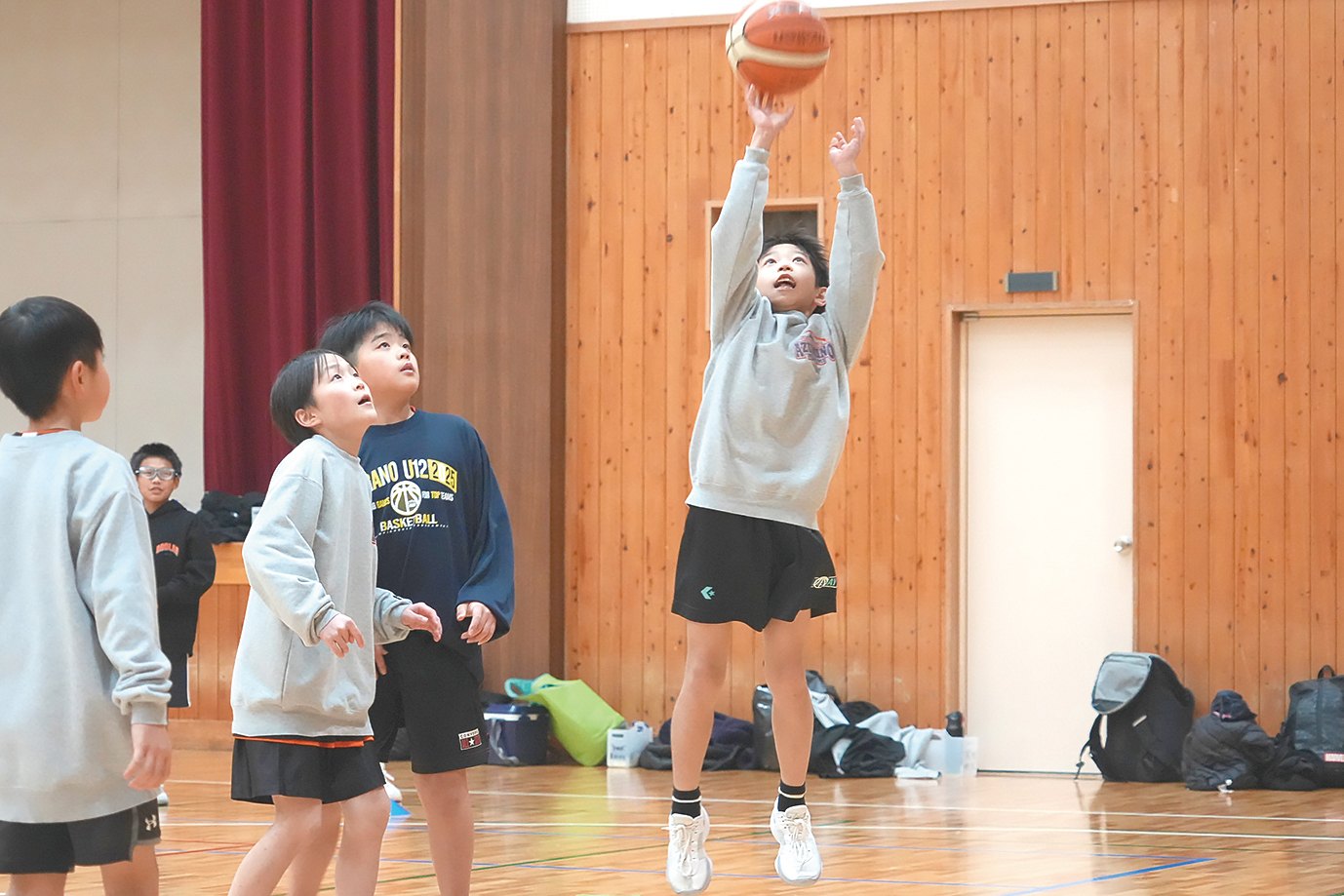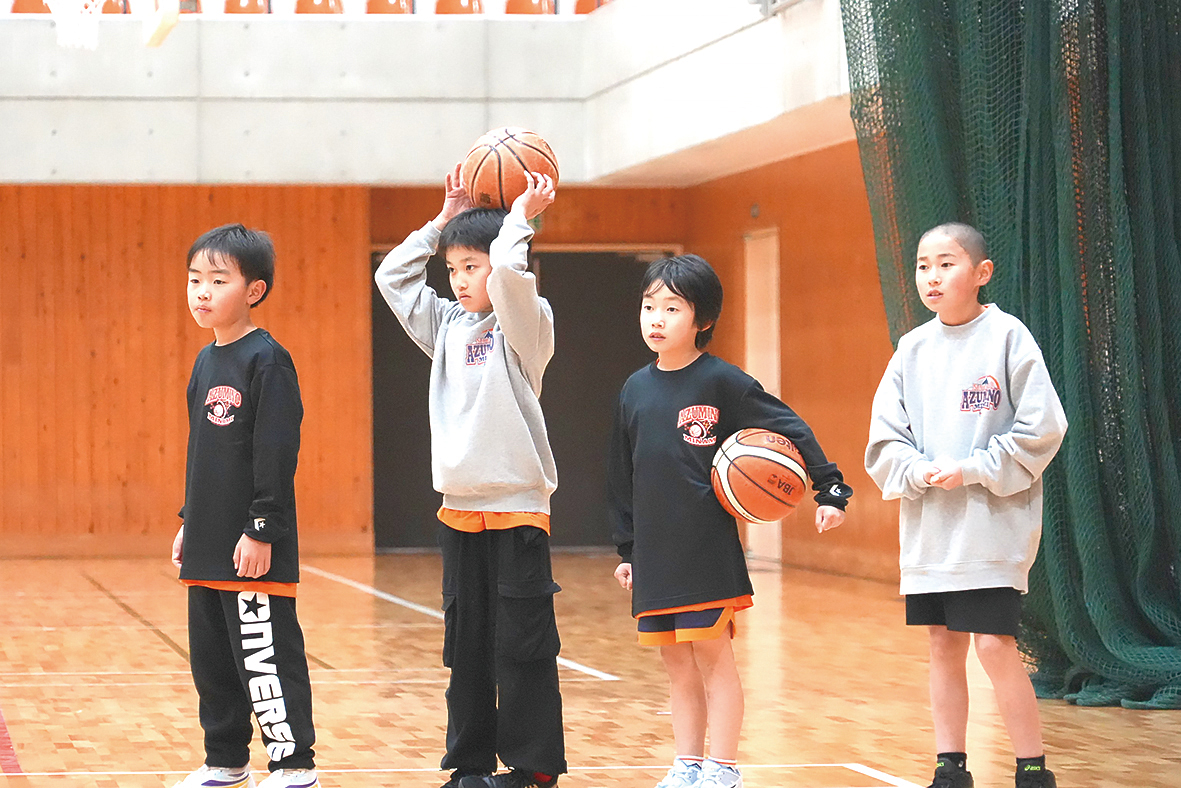 現在は6年生と5年生を中心に30名を超える部員が在籍している。体格に恵まれた選手こそ少ないものの、機動力を活かした「走り回るバスケット」で県大会出場や上位進出を目指している。指導体制は、コーチ7名のうち半数がかつての教え子やその同期生であり、世代交代の形をとり始めている。指導の根幹にあるのは、単なる技術向上にとどまらない「自立した人間」の育成だ。現代の傾向として自ら考える力を育てる必要性を挙げ、あえて保護者には「練習はコーチに任せ、家庭でも技術的な口出しをせず、子どもの良いプレーを褒めることに徹してほしい」と伝えている。バスケットボールを通じて、一人の人間として自律することを何よりも重んじる。