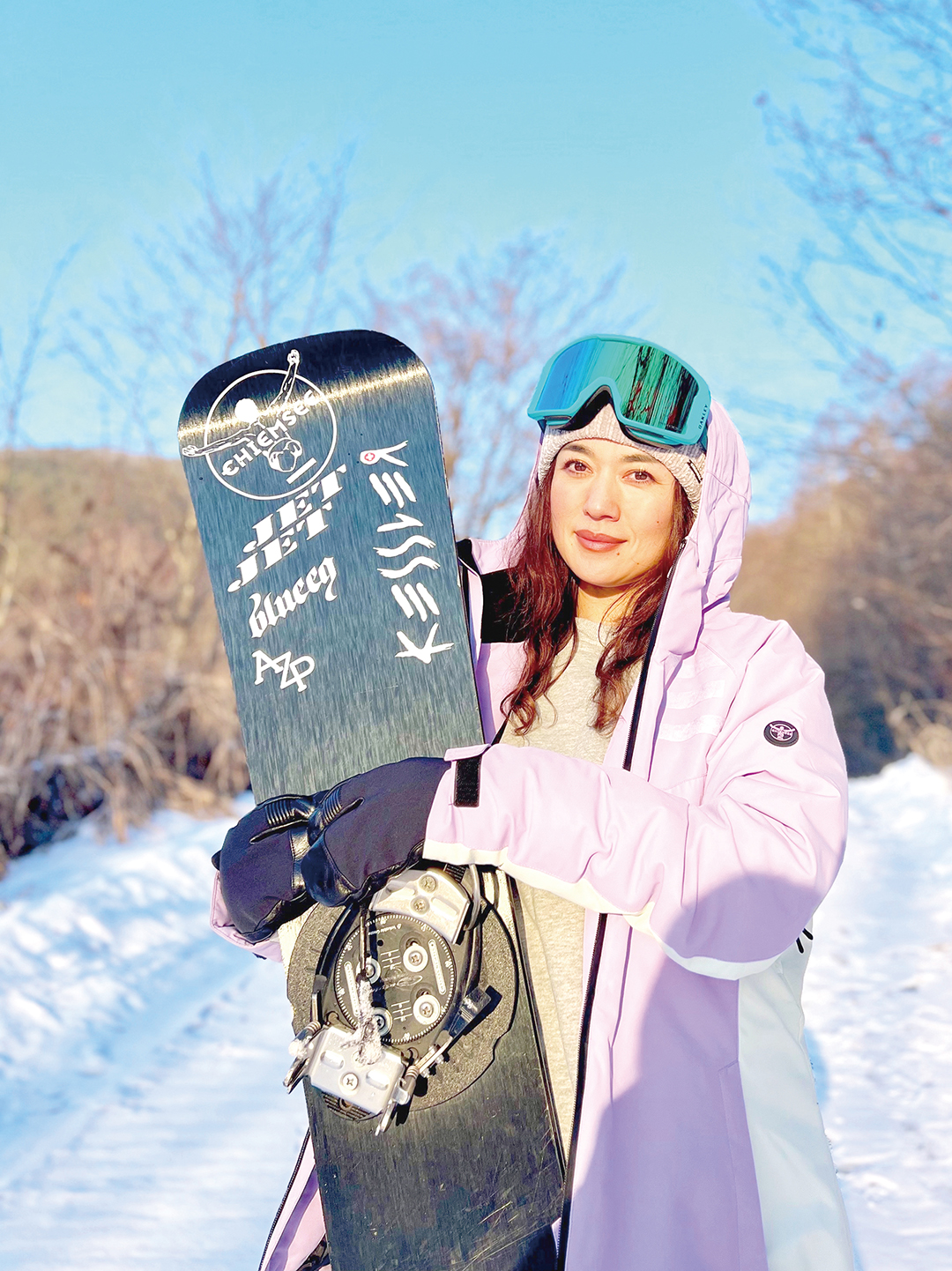 1982年9月2日生まれ、東京都出身。高校生でスノーボードを始め、22歳でインストラクター資格取得。全日本選手権やRed Bull Edgeなど数々の大会で入賞・優勝。希少難病「特発性多中心性キャッスルマン病」と診断されるも、治療を続けながらインストラクターに復帰。現在、AZプロスノーボーディングスクール鹿島槍校所属。動物病院に勤務。2児の母。