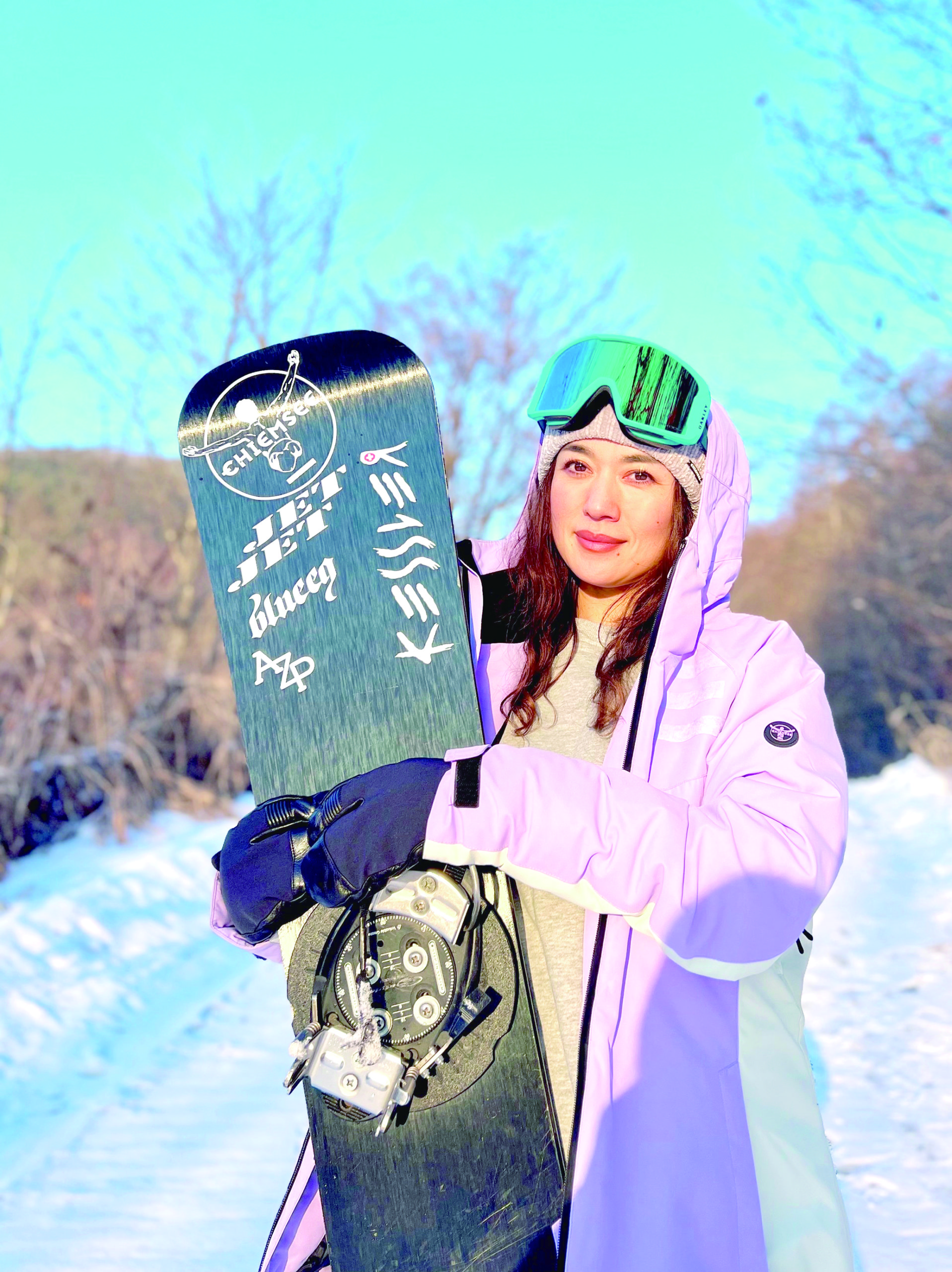 1982年9月2日生まれ、東京都出身。高校生でスノーボードを始め、22歳でインストラクター資格取得。全日本選手権やRed Bull Edgeなど数々の大会で入賞・優勝。希少難病「特発性多中心性キャッスルマン病」と診断されるも、治療を続けながらインストラクターに復帰。現在、AZプロスノーボーディングスクール鹿島槍校所属。動物病院に勤務。2児の母。