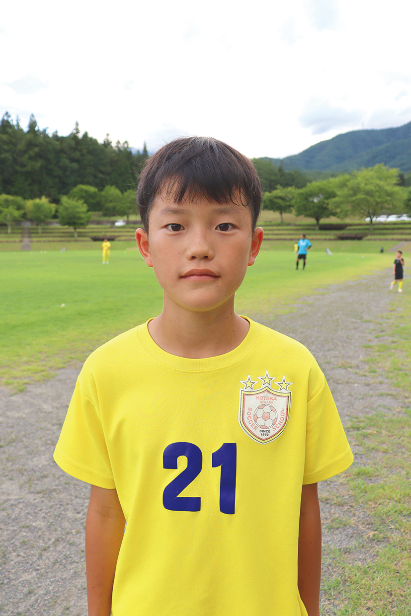 サッカーは幼稚園の頃から興味があって、小学2年生でチームに入りました。声を掛け合うことが良いチームプレーにつながるので、声掛けは大事だと学びました。中学でもサッカーを続けて、将来はサッカー選手になりたいと思っています。