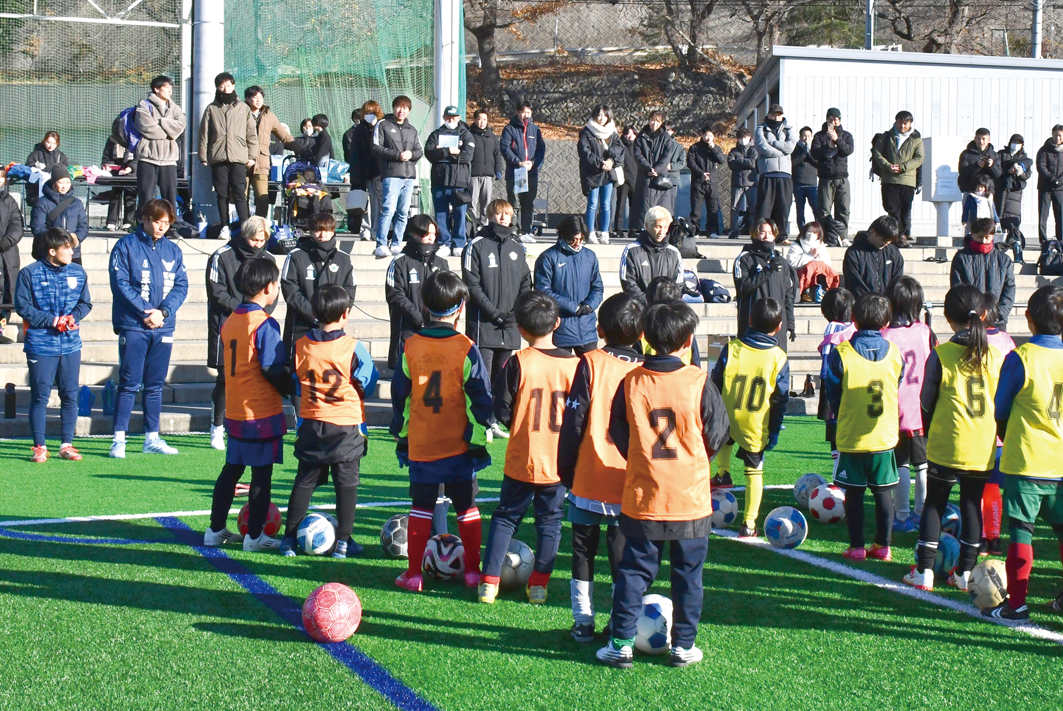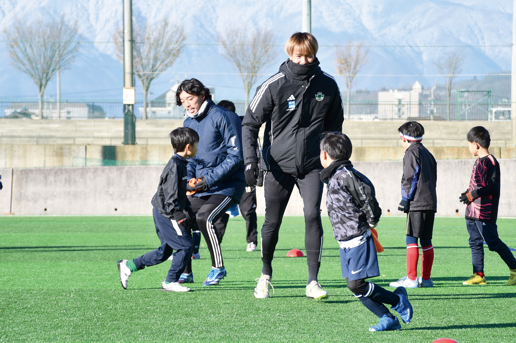 友人に誘われて松本市から参加した小学2年生の高屋柊吾くんは「体も温まって楽しかった」と笑顔を見せ、同じく2年生の須永湊大くんは「ゲームでゴールを決められてうれしかった。選手のプレーはうまくて、特にドリブルとシュートが上手だった」と満足気だった。