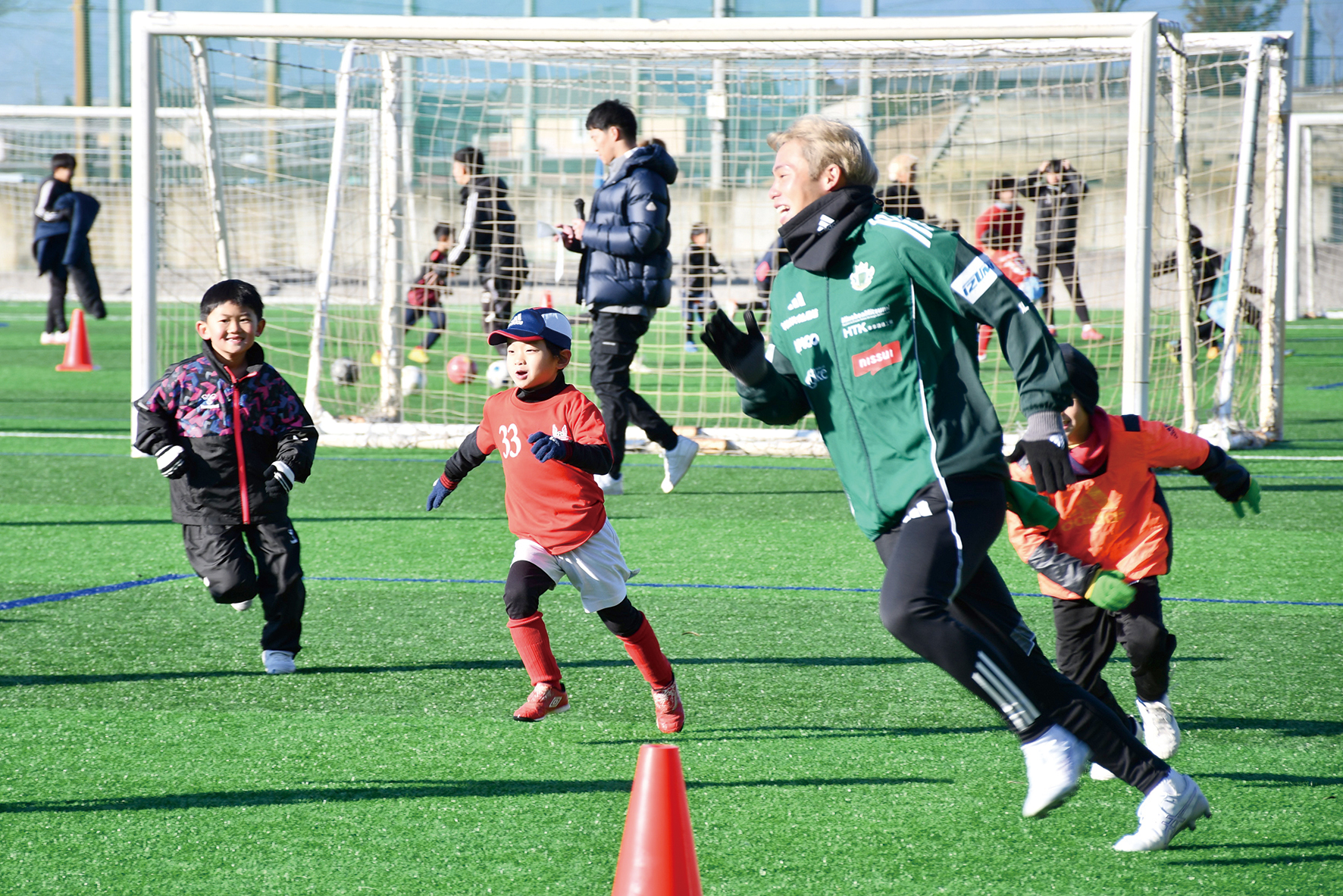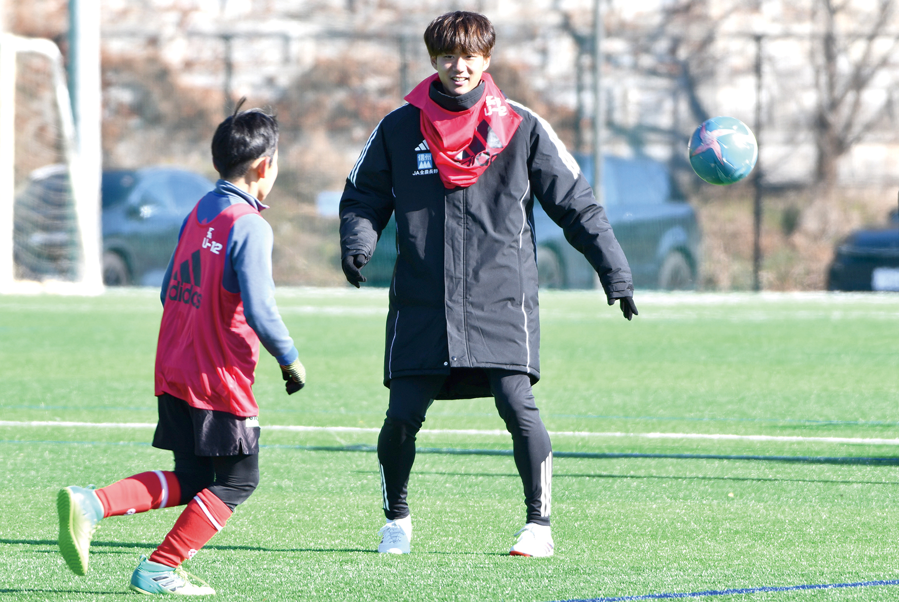 セキスイハイム信越の石原範久社長が思いを語る。「プロとして第一線で活躍しているJリーガーの皆様と直接触れ合うことで、サッカーの楽しさや挑戦することの楽しさを学んでほしい」。第3回となる今回は、昨年12月27日に信州グリーンフィールドかりがねで開かれ、過去最多となる約130人の子どもたちが参加した。