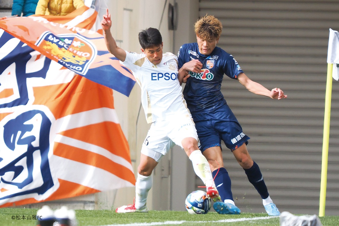 3月14日、信州ダービーの歴史が塗り替えられた。松本山雅FCはアウェイの長野UスタジアムでAC長野パルセイロに5ー0。開始2分のセットプレー弾を皮切りに前半4ゴールを挙げると、2試合連続のクリーンシートで2連勝。リーグ戦では2007年7月1日以来、実に19年ぶりとなるアウェイ長野での白星をもぎ取った。